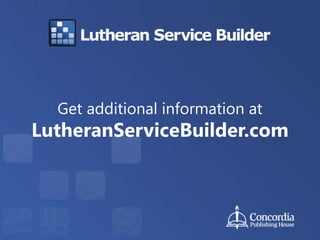 Get an overview of how your church can plan worship services more quickly with the new online version of Lutheran Service Builder. Introducing the New Online Lutheran Service Builder. Downloading Lutheran Service Builder 23.